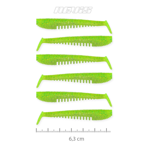 1 kép Nevis Impulse Shad 6.3cm 6db/cs FluoZöld Flitter 2x