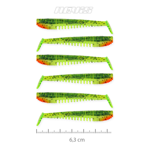 1 kép Nevis Impulse Shad 6.3cm 6db/cs Zöld-Narancs Flitter