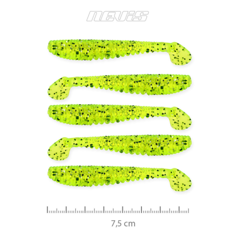 1 kép Nevis Impulse Shad 7.5cm 5db/cs FluoZöld Flitter