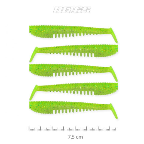 Nevis Impulse Shad 7.5cm 5db/cs (neonzöld-csillám) csali árgrafikon