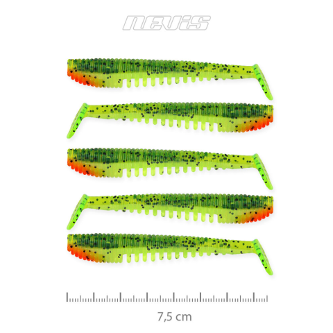 1 kép Nevis Impulse Shad 7.5cm 5db/cs Zöld-Narancs Flitter