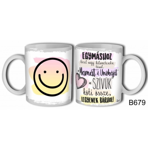 Feliratos kerámia bögre, A mamát és unokáját a szívük köti össze 3 dl Befoglaló mérete: 12 x 8 x 9,5 cm