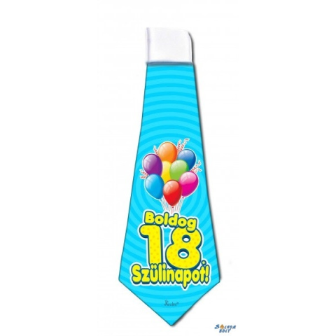 Nyakkendő, Boldog 18. 20. 30. 40. 50. 60. 70. szülinapot Nyomott mintás, gumis, nyakba akasztható. Mérete: 37 cm x 13 cm Anyaga: poliészter Születésnapi ajándék ötlet férfiaknak