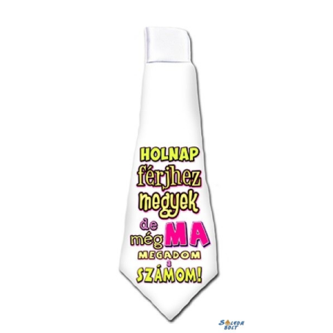Nyakkendő, Holnap férjhez megyek Nyomott mintás, gumis, nyakba akasztható. Mérete: 37 cm x 13 cm Anyaga: poliészter