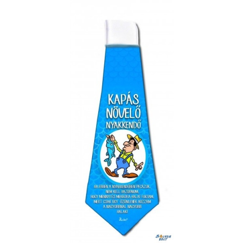 Nyakkendő, Kapás növelő Nyomott mintás, gumis, nyakba akasztható. Mérete: 37 cm x 13 cm Anyaga: poliészter Vicces ajándék horgászoknak