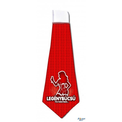 Nyakkendő, Legénybúcsú folyamatban Nyomott mintás, gumis, nyakba akasztható. Mérete: 37 cm x 13 cm Anyaga: poliészter Vicces ajándék legénybúcsúra