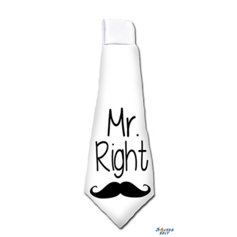 Nyakkendő, Mr Right Nyomott mintás, gumis, nyakba akasztható. Mérete: 37 cm x 13 cm Anyaga: poliészter
