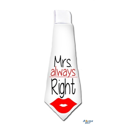 Nyakkendő, Mrs always Right Nyomott mintás, gumis, nyakba akasztható. Mérete: 37 cm x 13 cm Anyaga: poliészter