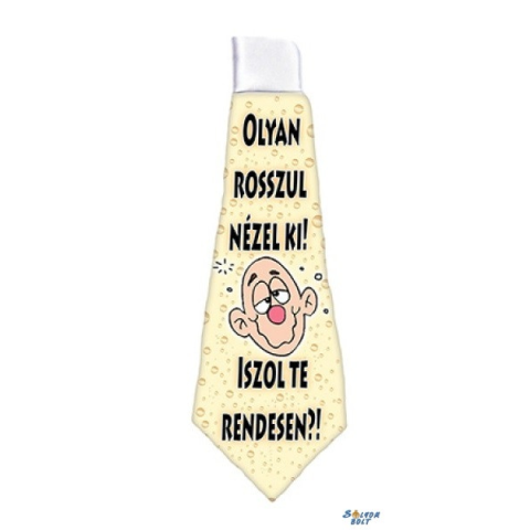 Nyakkendő, Olyan rosszul nézel ki, iszol te rendesen? Nyomott mintás, gumis, nyakba akasztható. Mérete: 37 cm x 13 cm Anyaga: poliészter