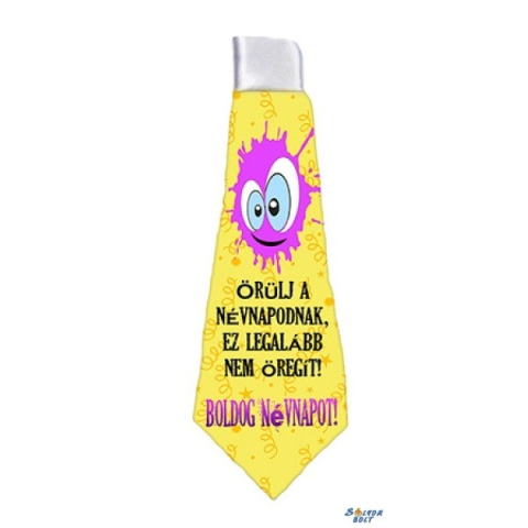Nyakkendő, Boldog névnapot Nyomott mintás, gumis, nyakba akasztható. Mérete: 37 cm x 13 cm Anyaga: poliészter