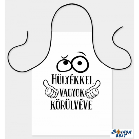 Nevlini szakács kötény, hülyékkel vagyok körülvéve lakástextília termékleírás