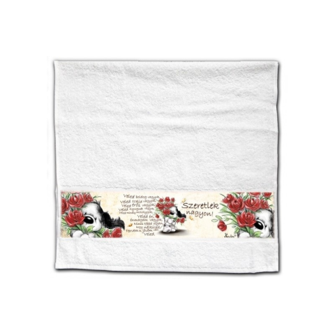 1 kép Nevlini Szerelmes törölköző, szeretlek nagyon, kutyus virágokkal
