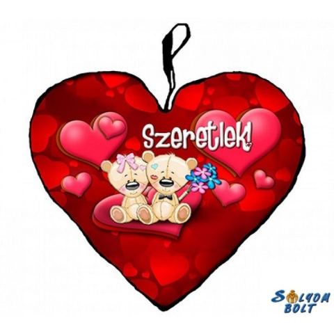 1 kép Nevlini Szív alakú párna, macikák párban, virággal, szeretlek