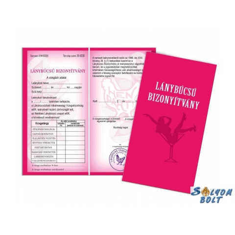 Kitűnő ajándék, amelytől garantált a jókedv. Anyaga: papír Mérete: 18,5 x 20 cm Nagyszerű, vicces ajándékötlet lánybúcsúra hölgyeknek. Garantáltan mosolyt csal az arcokra, kitöltése is szórakoztató időtöltés. A beírt adatok, érdemjegyek, aláírások mia