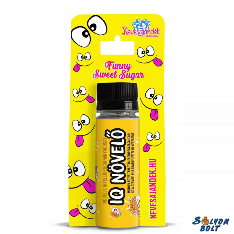 Műanyag flakonban mentol ízű szőlőcukor. A terméken lévő kép és szöveg nem fedi a valóságot, ez egy poénos termék. A készítmény nem gyógyszer! Flakon mérete: 10 x 3,5 cm Nettó tömege: 50 g VICCES CUKOR, IQ NÖVELŐ Nem helyettesíti az iskolát, de legalá