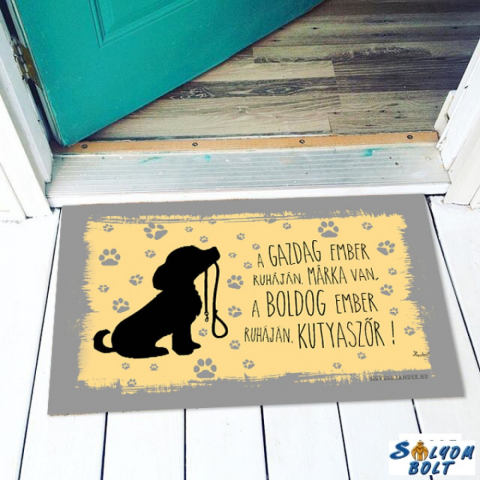 Teljes Nevlini Vicces színes lábtörlő, Boldog ember ruháján kutyaszőr termékleírás
