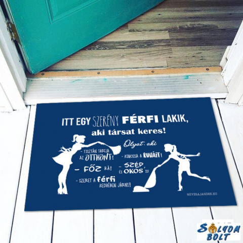 Nevlini Vicces színes lábtörlő, Itt egy szerény férfi lakik lakástextília termékleírás