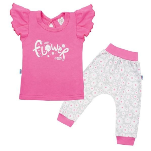 1 kép NEW BABY 2-részes pamut együttes New Baby Happy Flower sötét rózsaszín