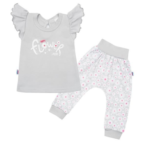 NEW BABY 2-részes pamut együttes New Baby Happy Flower szürke
