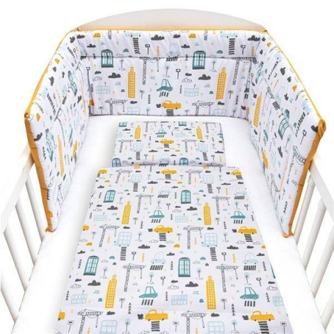 2 kép NEW BABY 3-részes ágyneműhuzat New Baby 90/120 cm Város mustár