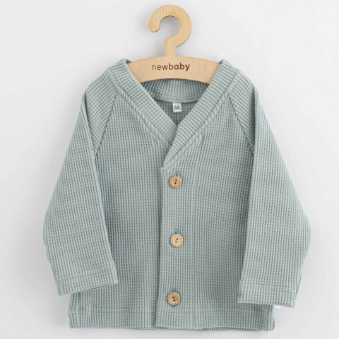 New Baby Oliver elegáns baba kabát – kardigán. A V-alakú nyakkivágású fiúkabát praktikus gombos rögzítéssel rendelkezik. A gyönyörű fa gombok elegáns megjelenést kölcsönöznek
