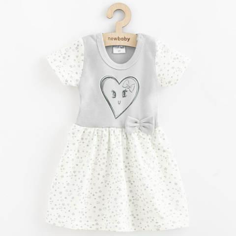 Aranyos, divatos baba nyári ruha New Baby Szivecske kishercegnők számára. A alakú ruha aranyos rövid ujjakkal és szivecske mintával rendelkezik. Válnál patentos, ami megkönnyíti a baba öltöztetését. Nagyon kellemes és puha anyagból készült, amelyben a baba nagyon kényelmesen fogja érezni magát. A modern designnak köszönhetően a baba nagyon aranyos lesz. Anyaga: 100% pamut.