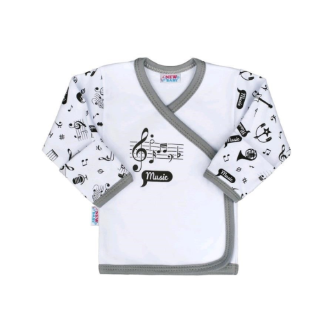 Eredeti, divatos pamut baba ingecske New Baby Music. Az ingecske egyszínű hangjegyekkel és felirattal Music díszitve. Teljes hosszában patentos, ami megkönnyíti a baba öltöztetését. Puha minőségi anyagból készült, amibe a baba kényelmesen fogja érezni mag