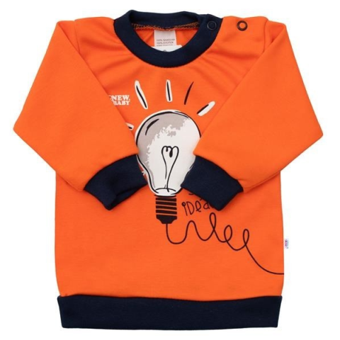 Aranyos, játékos baba pamut póló New Baby Happy Bulbs. A hosszú ujjú póló nyak, ujj és derékrészét színes szegély zárja. Vicces és mosolygós izzókat nyomtattak a trikó teljes felületére, good idea felirattal. Vállnál patentos, ami megkönnyíti a baba öltöz