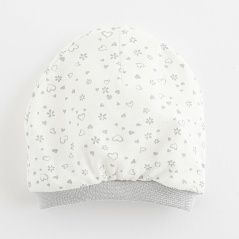 New Baby Szivecske sapka. A sapka képekkel díszítve. Remek darab, amely csodás kiegészítőként vagy praktikus ruhadarabként is használható. A szegély széles, ami nem nyomja a baba fejét. Kellemes tapintású, és éppen a baba fejére illik. Anyaga: 100% pamut.
