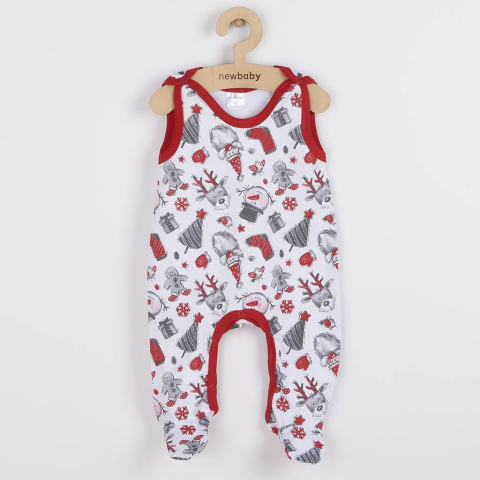Aranyos pamut rugdalózó New Baby Christmas kisbabák számára. A rugdalózót aranyos karácsonyi motívum díszíti. Vállnál és az ülepénél patentos, ami megkönnyíti a baba öltöztetését és pelenkázását. A kollekció nagyon kellemes, puha és minőségi anyagból kész
