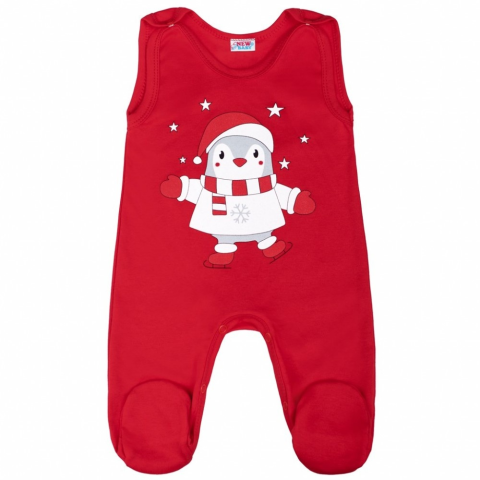 Pamut rugdalózó New Baby Winter Penguin kisbabák számára. A rugdalózó piros és az első részén aranyos és vidám pingvin található. Vállnál és az ülepénél patentos. A kollekció nagyon kellemes, puha és minőségi anyagból készült. A divatos kollekció lányok é