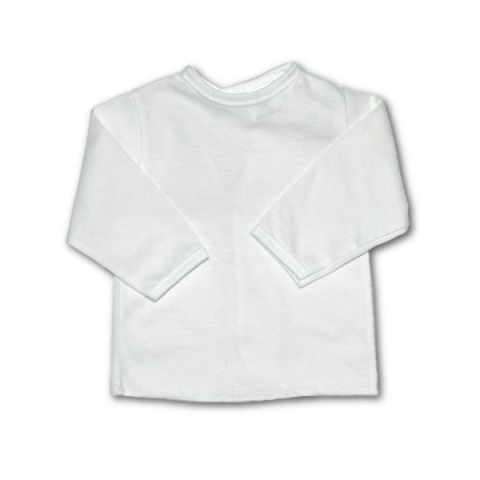 Csecsemő vékony pamut ingecske. Az ingecske színe fehér, hátul madzaggal köthető. Anyaga 100% pamut. Mérete: hossza válltól számítva 29 cm, mellbősége kb 42 cm, újjhossza kb 24 cm.
