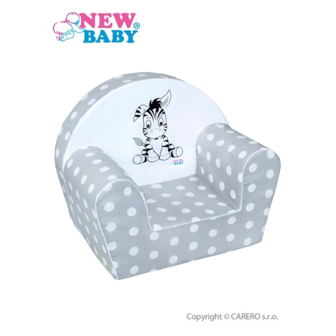 Gyermek fotel New Baby Zebra. A gyerekszobába alkalmas. Puha minőségi anyagból készült. Pamut bevonattal rendelkezik amely levehető és mosható. Szép színekbe, pöttyös és zebra képpel díszitve. Mérete 42x53 cm, háttámla magassága kb 29 cm, szélessége kb 25