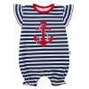 Baba nyári pamut rövid ujjú kezeslábas New Baby Marine. A csíkos overall aranyos fodros ujjakkal és horgony rátéttel rendelkezik. A rátét béléssel van takarva. Vállnál és az ülepénél patentos. Nagyon kellemes és puha anyagból készült. A New Baby számára n