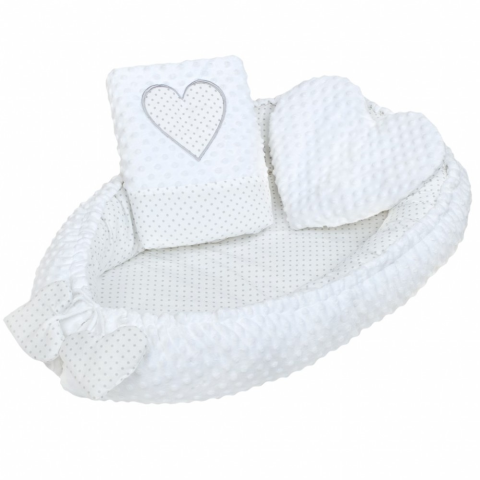 1 kép NEW BABY Luxus babafészek párnával és paplannal New Baby Szívecske fehér