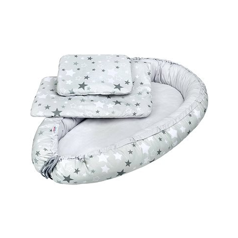 2 kép NEW BABY Luxus babafészek takaróval és párnával - fehér-szürke csillagok