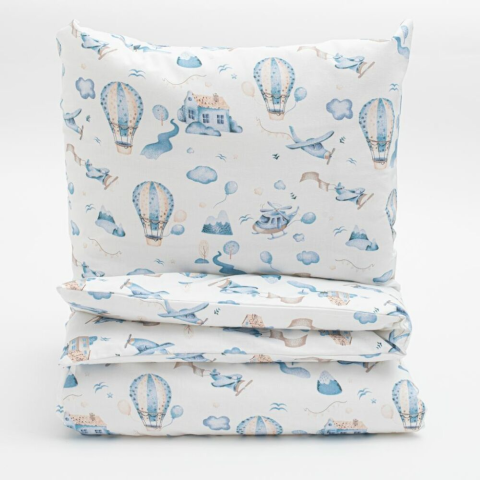 Gyönyörű New Baby Romance pamut szett gyerekágy. A szett egy párnát és egy paplant tartalmaz mesebeli felhős kalandok mintával. Antiallergén szál töltettel. A szett kiváló minőségű pamutból készült. A pamut szett fényűző módon, gyengéden simogatja és mele