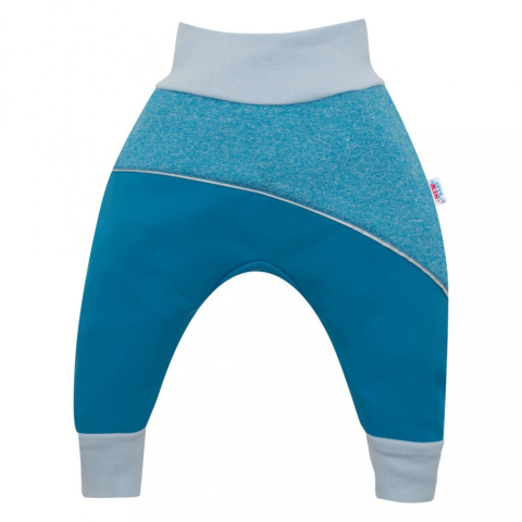 Divatos softshell baba nadrág New Baby. Minőségi softshell anyagból készül. Az anyag sima, rugalmas, puha és kellemes tapintású. Bizonyos fokig vízálló, nem szívja fel a vizet és ellenáll a szennyeződéseknek. A nadrág rugalmas gumi derékpánttal rendelkezi
