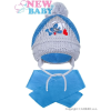 Szép téli kötött sapka New Baby. Csodálatos motívummal díszitve. Puha, rugalmas, bélelt, megkötős sapka. A tetején bojt található. Anyaga 100% pamut. Téli napokra alkalmas. Alakján köszönhetően a fülek is védve maradnak. A sapka átmérője kb 44-48 cm. Sál