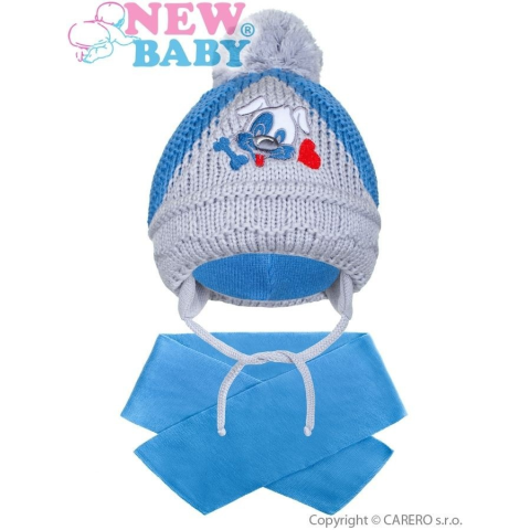1 kép    NEW BABY Téli gyermek sapka sállal New Baby kutyus sötét kék