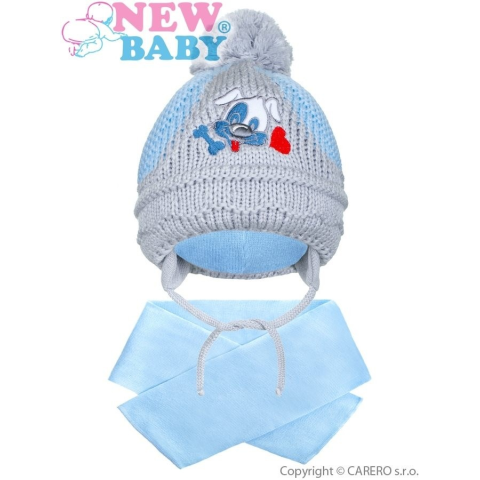 1 kép NEW BABY Téli gyermek sapka sállal New Baby kutyus világos kék