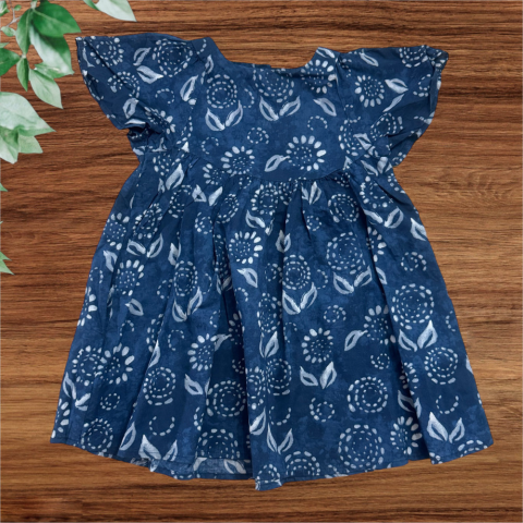 Kék, virágos ruha Bőszabású, kerek nyakú, háta gombos, kellemes vékony anyag. mell:2x29cm hossz:48cm Hibátlan állapotú.