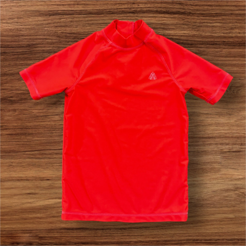 Neon narancs színű, kissé magasított nyakú, nyaknál cipzáros. UV szűrős +50, rugalmas sztreccs anyag. mell:2x32cm hossz:45cm Hibátlan állapotú.
