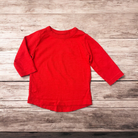 Piros hosszú ujjú felső Egyenes szabású, kerek nyakkivágású, kellemes pamut anyag. Hibátlan állapotú.