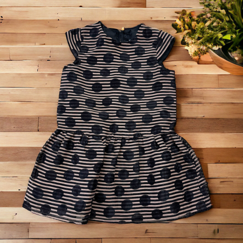 Csinos pöttyös mintás ruha, nyaknál egy gombbal záródik. mell:2x31cm hossz:51cm Hibátlan állapotú.
