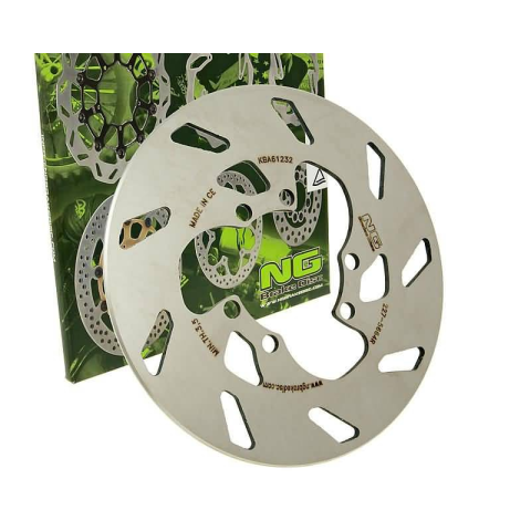 GileraCANNIbal 50 - 1996-1998 (hátsó)GSM 50 - 1999-2001 (hátsó)H @ K 50 - 2001 (hátsó)ZULU 50 - 2001 (hátsó)Az NG féktárcsák motorkerékpárokhoz, robogókhoz, quadokhoz és ATV-khez készülnek, és több mint 30 európai és japán gyártó által gyárilag felszerelt