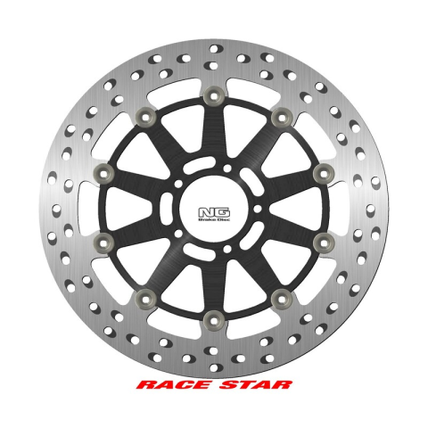 NG Race Star: a legjobb fékerő teljesítmény mind az utcán, mind a pályánA prémium NG Race Star sorozat kizárólag SuperSport és Superbike motorokhoz érhető el. Most már választhatod ezt az új féktárcsa sorozatot, amely a legjobb fékerő teljesítményt nyújt mind az utcán, mind a pályán.Az összes Race Star féktárcsának van egy alumínium magja, amely jelentősen csökkenti a súlyát. Láthatod, hogy az új csavarok kemény anodizálással kezelték, amelyek már megtal