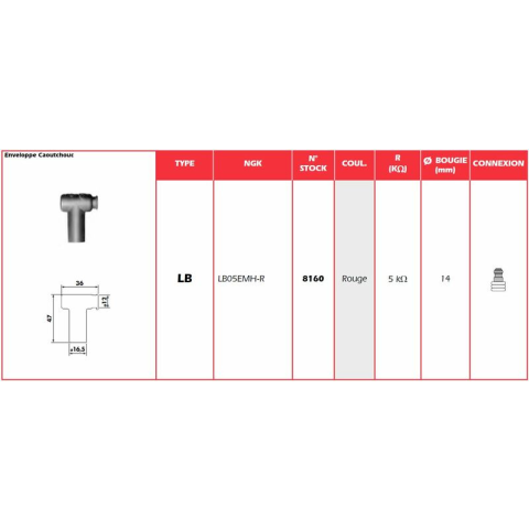 1 kép NGK Piros Gyújtógyertya Sapka - LB05EMH-R