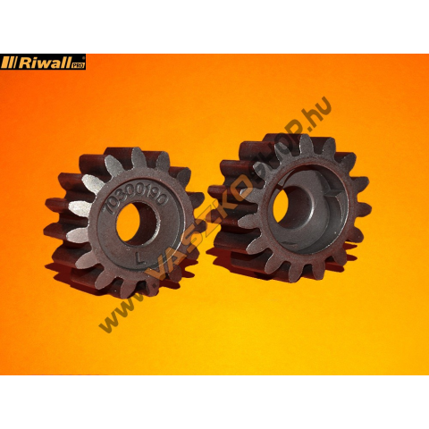 Riwall RPM5135 , RPM5153 fűnyírókerék hajtás fogaskerék Gyári cikkszám: CZ/ ZT Gronych Jobb: 70300200 , 70300240 , A/0688 Bal: 70300190 , 70300230 , A/0687 Méretek: Fogszám: 15 Átmérő: Ø 42 mm Szélesség: 18,2 mm