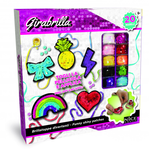Készíts flitteres mintákat kedvenc pólóidra vagy más ruhadarabjaidra!Használd az öntapadós, újra pozícionálható ragasztót és a színes flittercsíkokat.A szett tartalmaz 10 orsó flitteres szalagot, 20 előre kivágott ragsztó mintát.Olasz minőség a Nice Group